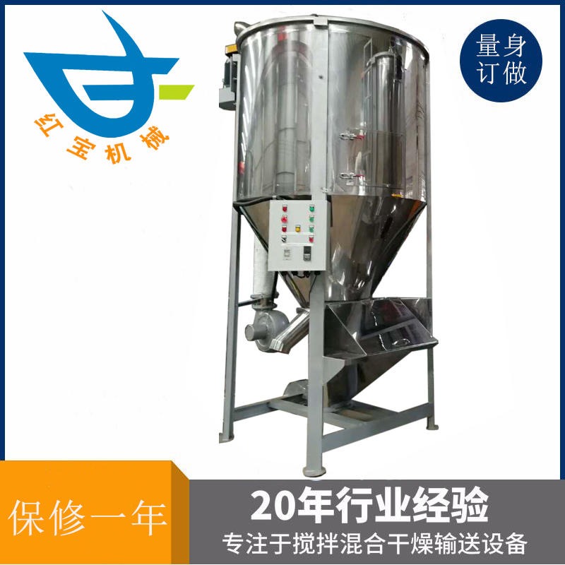 塑料烘干機結構特征及部件說明1.整體機座,結構堅固、運轉平穩,攪拌槳葉及物料接觸處全用不銹鋼制成,有良好的耐腐蝕性,保持物料的質量和清潔,不致變色。2.傳動機構采裝置在桶體**頂部的電動機通過三角帶傳動螺桿、蝸輪,以1:40的減速帶動攪拌機直接傳動,使用時無過大響聲,并有足夠的儲油量,能得到良好的潤滑。塑料烘干機安裝方法